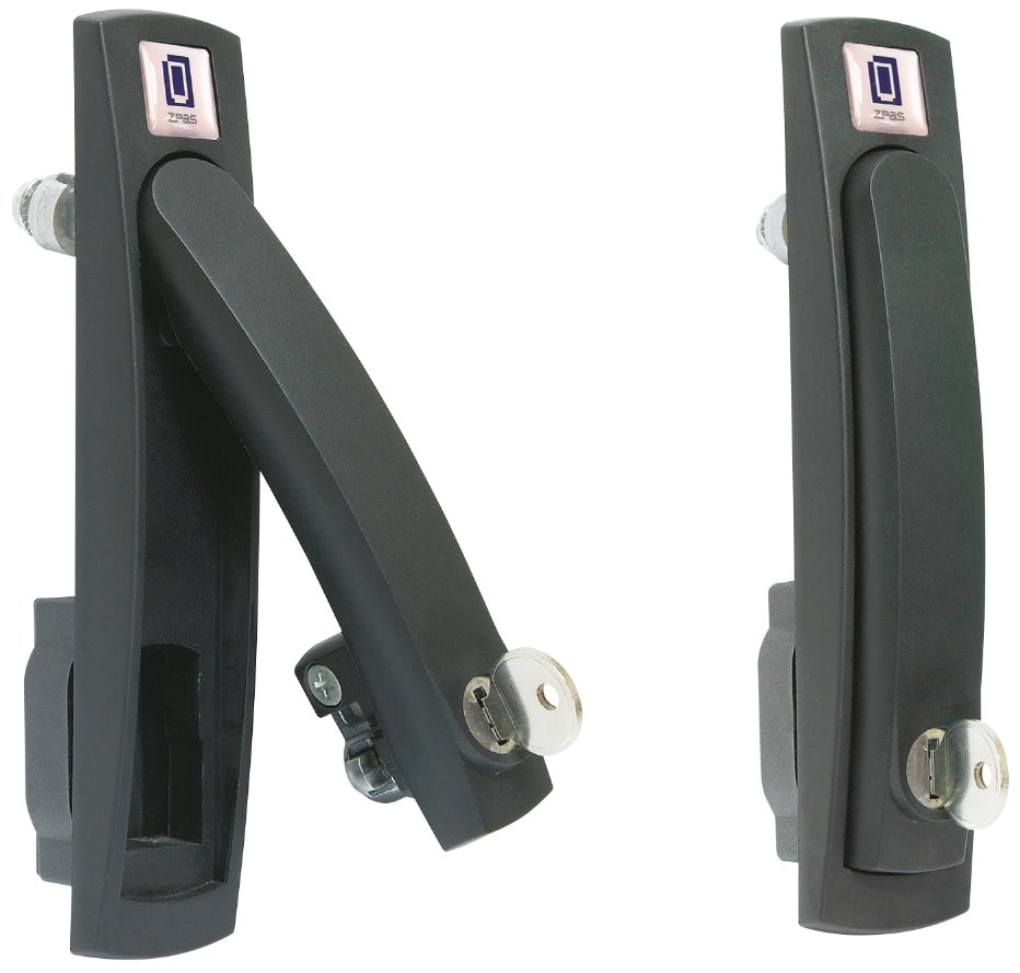 Tür inklusive Doppelbart-Schließung und Scharnier.