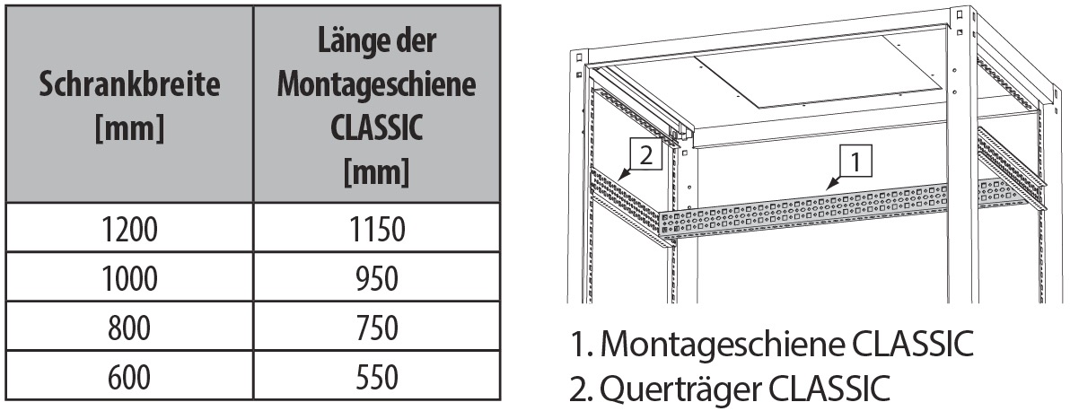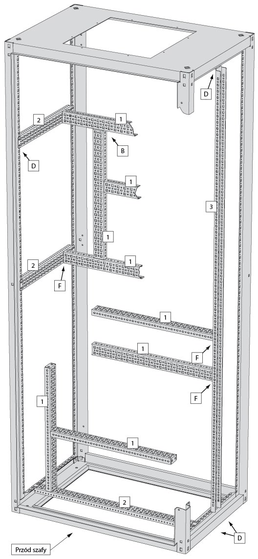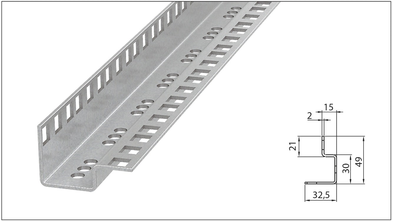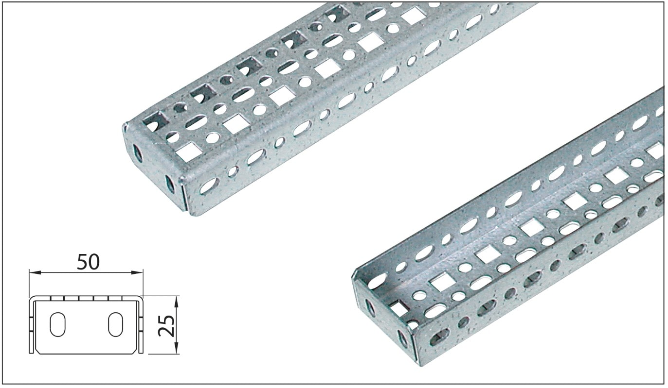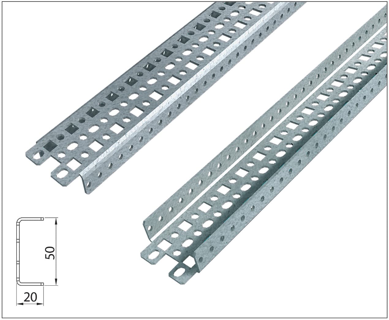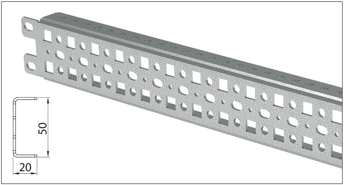 Montageschienen UNI ermöglichen die Gestaltung jedes Gestells innerhalb des Schrankes. Die Lochungen in den Schienen sind sowohl an die horizontalen als auch vertikalen Lochungen im Schrankgerüst angepasst.Das Standardangebot enthält Schienen, deren Länge den Schrankabmessungen angepasst sind (siehe untenstehende Tabelle). Andere Schienenlängen auf individuelle Kundenanfrage. Es können auch individuelle Schienenlängen zugeschnitten werden.
