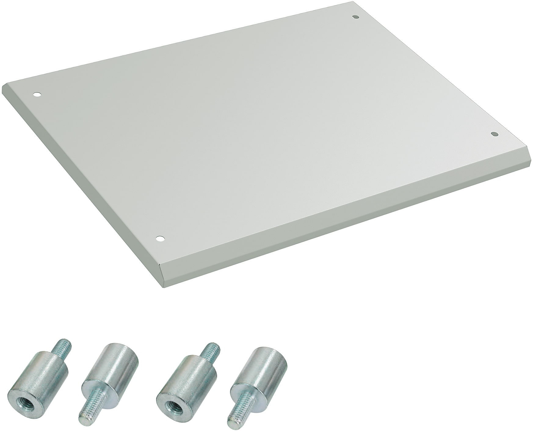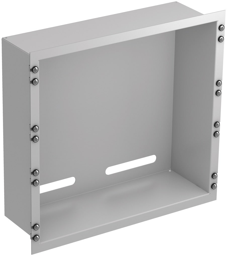 Stahlblech, pulverbeschichtet in RAL 7035 oder RAL 9005.