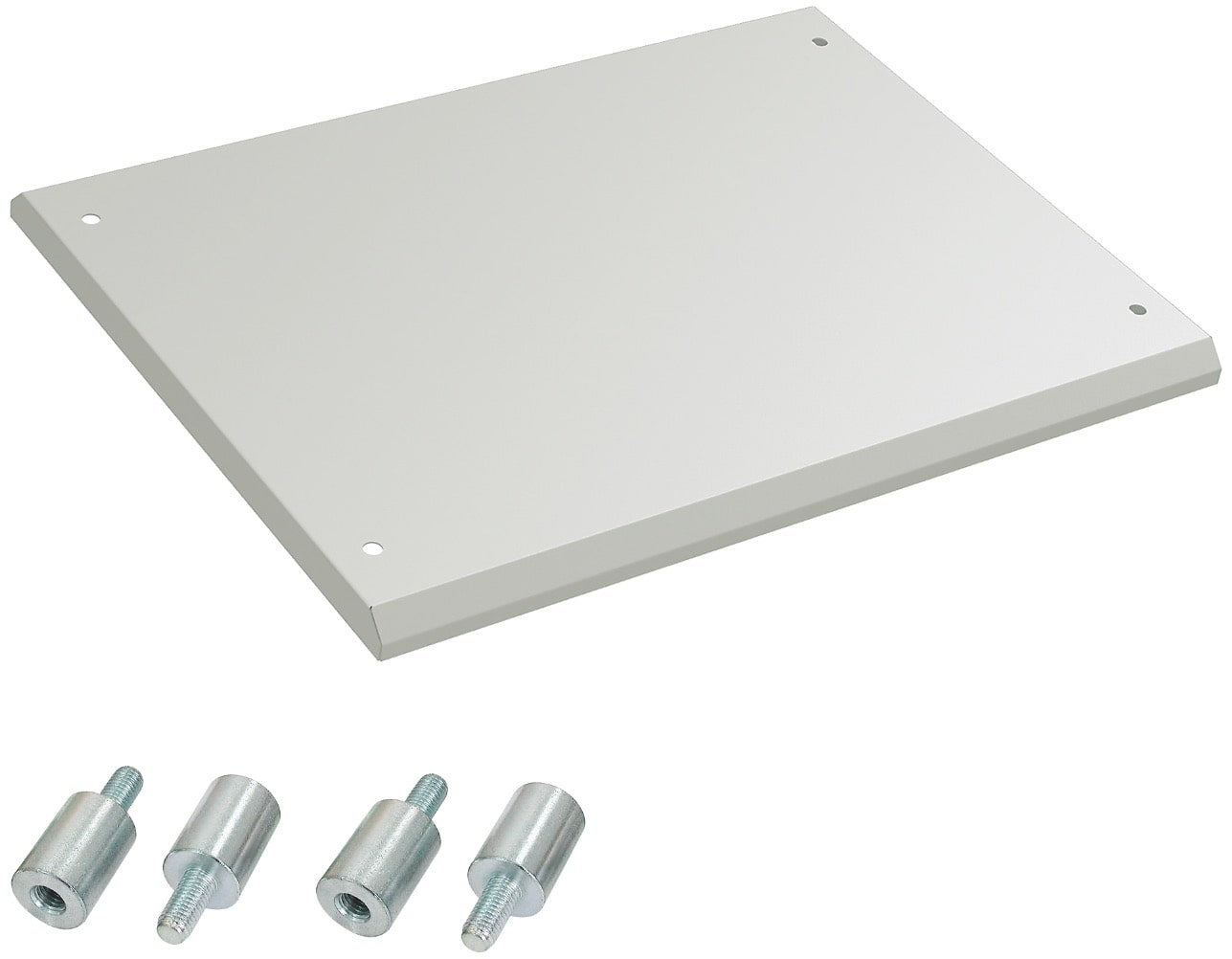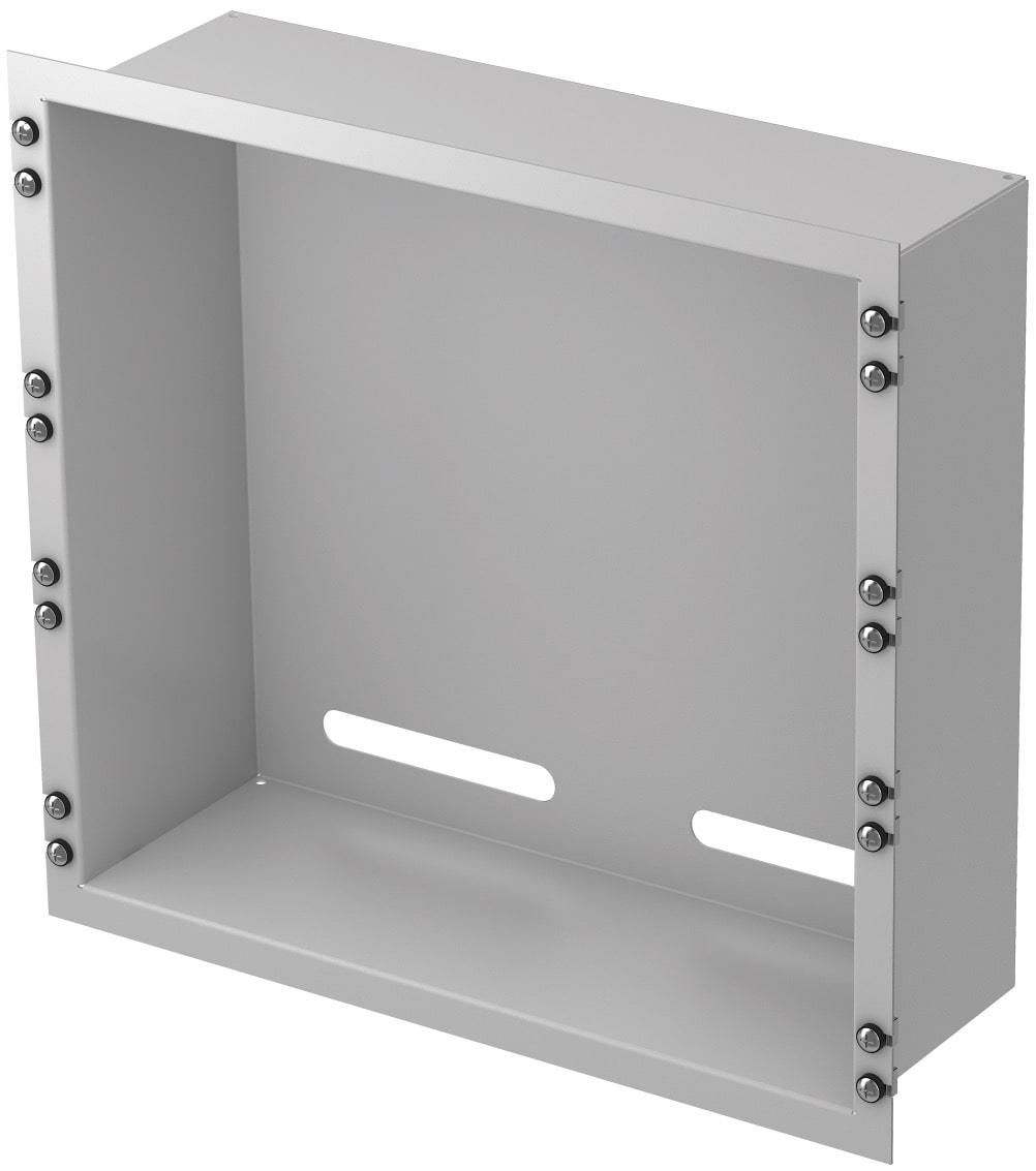 Stahlblech, pulverbeschichtet in RAL 7035 oder RAL 9005.